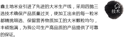 鐵等礦物質(zhì),無污染的環(huán)境,豐產(chǎn)的水稻資源,使鑫土地米業(yè)不斷發(fā)展壯大,成為綏化地區(qū)新崛起的一支精制大米生產(chǎn)的生力軍。